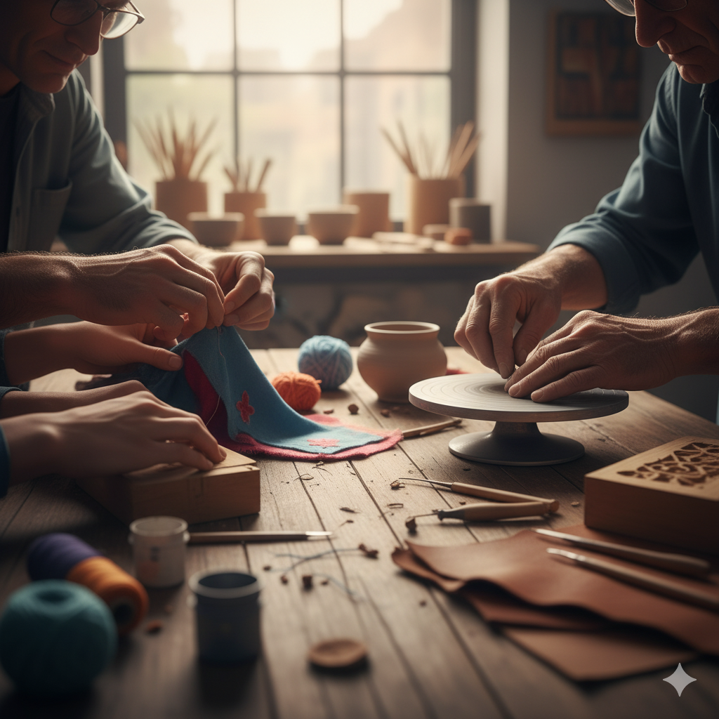 Research shows that working with our hands activates different parts of our brain than screen-based work. Traditional crafts offer: